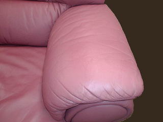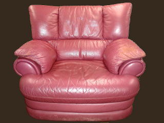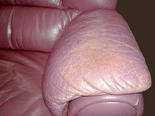 著しく劣化したものは、赤いソファのアームのように