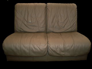 こちらのソファも、背もたれは多少の汚れと退色が見られるものの、