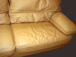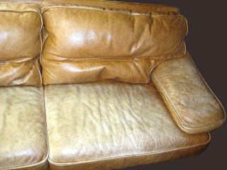(特にこちらのソファーはセミアニリンの中でも顔料の膜が薄いタイプでございました。)
