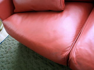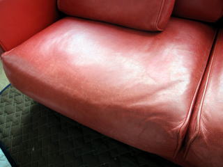 このような革は、塗装でリペアした場合に 施工前と風合いが変わりますが、