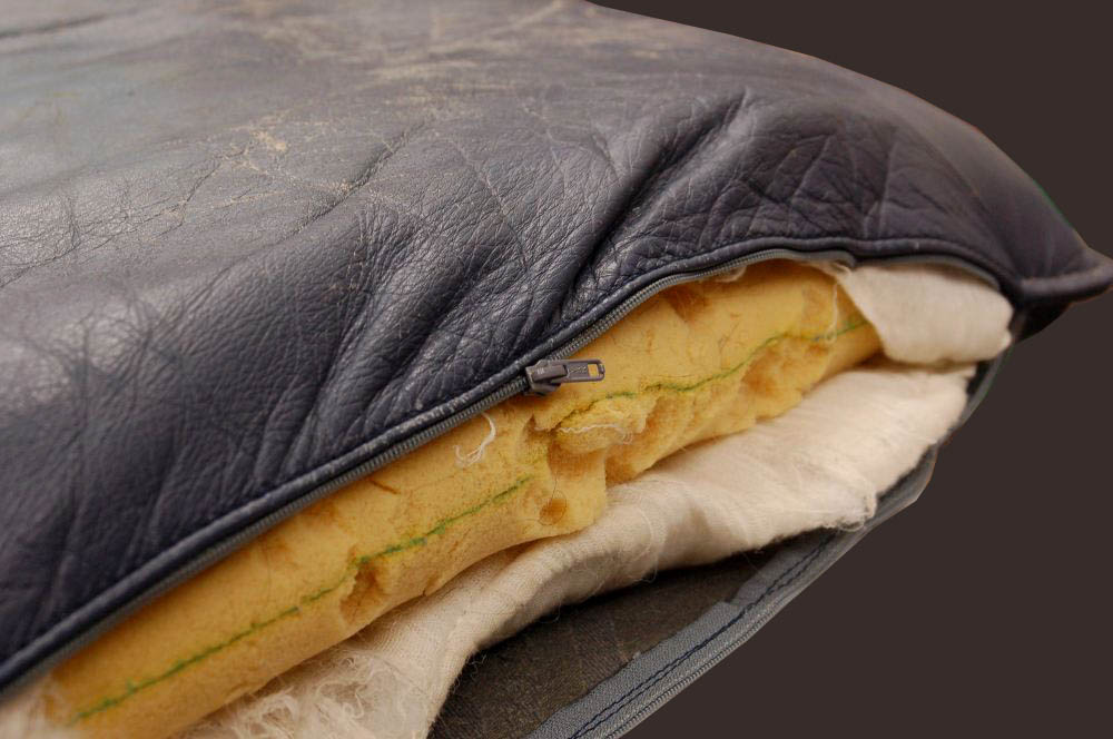 座面のクッションは一部ファスナーが破損しているものもございましたので、ファスナー交換もさせていただきました。