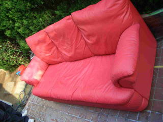 三人掛けのソファー、全体のカラートリートメント・座面のリペアをを承りました。