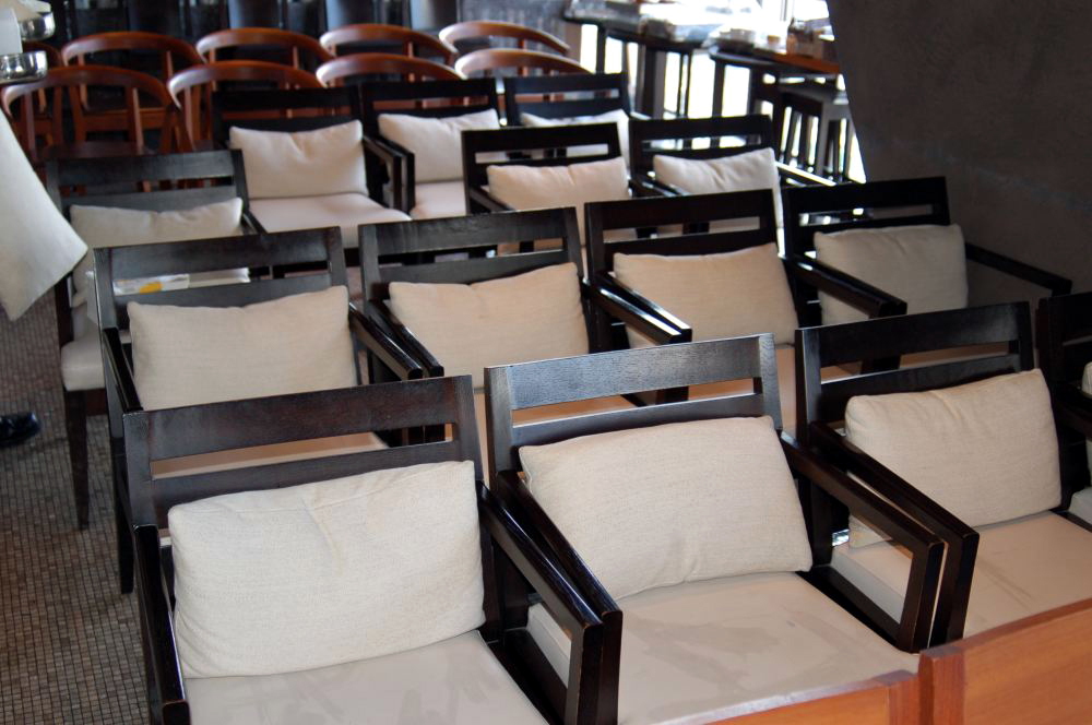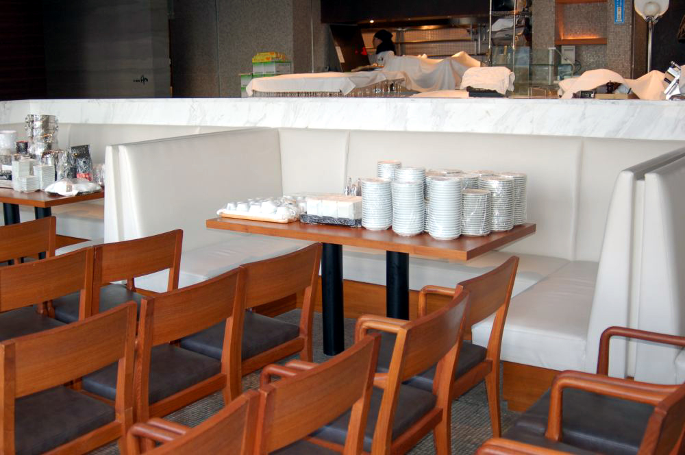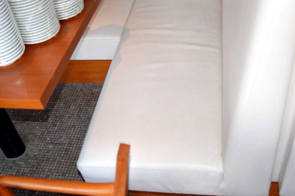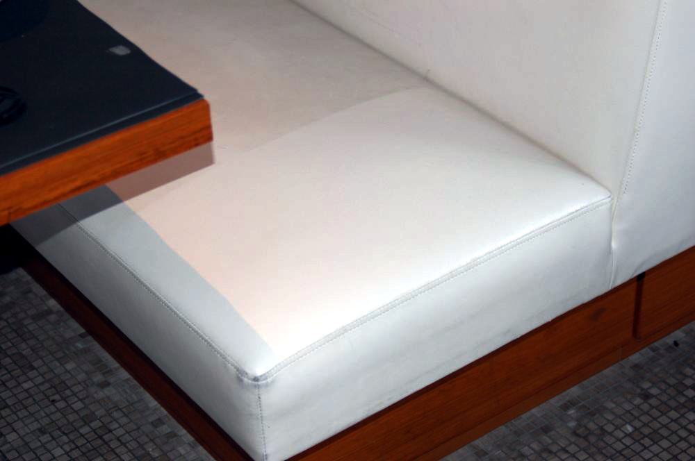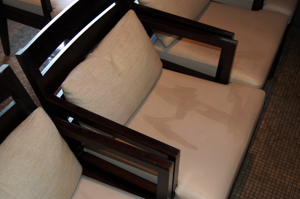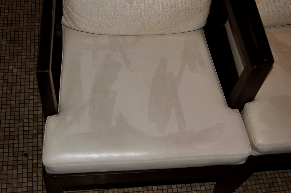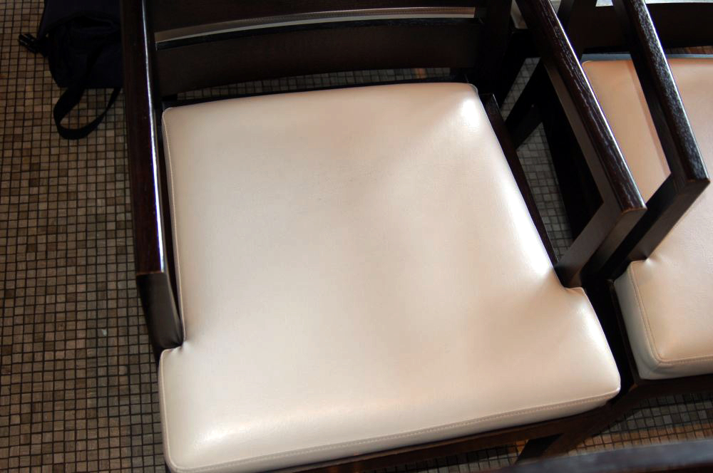 白いレザー張りのインテリアが揃う 都内の飲食店でクリーニングさせていただきました。
