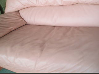 二人掛けソファー、こちらは座面・アーム・背もたれの一部をリペア・カラートリートメントいたしました。