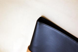 ベージュの帯の部分は、生成りに近い 染料を薄く染みこませたタイプの革でしたので