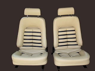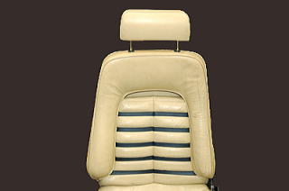 ネイビーとマグノリアのコントラストが美しい、こちらのデイトナシートはフェラーリBB。車内風景の画像は施工前のものでございますが、マグノリアが汚れによってくすんでいるのと、