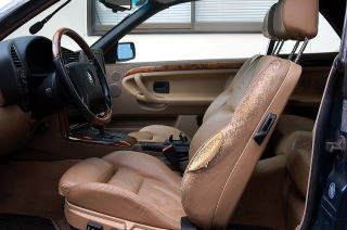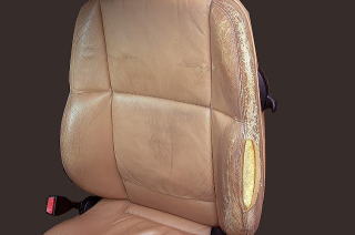 ドライバーズシートは、サポート部の革が破損しており、中のウレタンが見えている状態でしたので、部分的にお張替えいたしました。