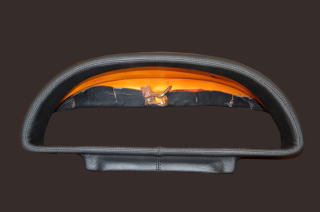 アルカンターラで張られていたメーターパネルを、黒い本革で巻きなおしました。