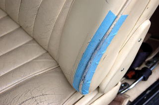運転席の座面・背もたれサポート部は特に損傷が著しい状態でした。