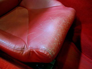 硬くなった塗料がヒビ割れ、これは下の革もヒビが入っているかな・・・